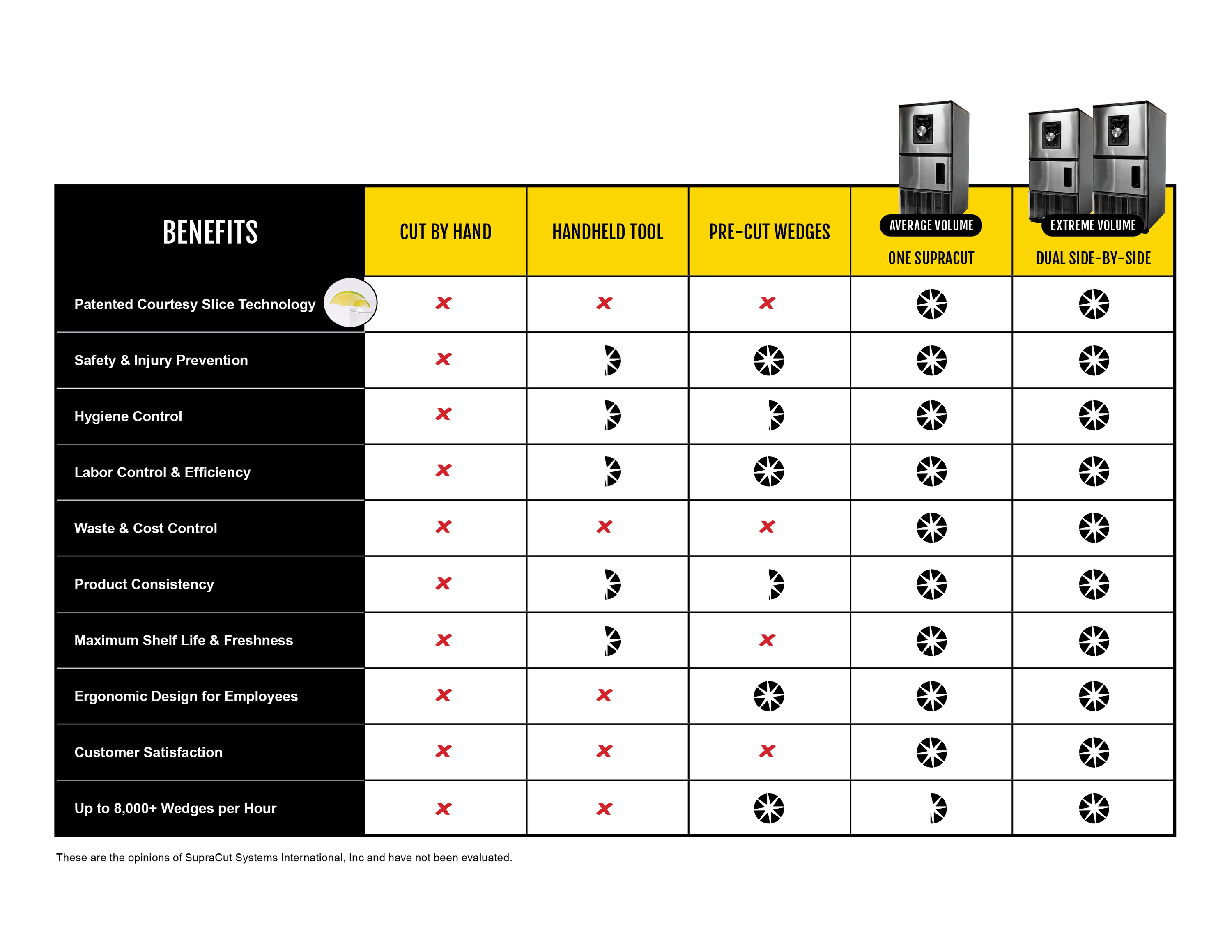 SupraCut™ is the only automated citrus slicer that wedges and has the option to courtesy slice in one motion. Easy-to-use, commercial-grade design is built to handle any volume and fit seamlessly into any restaurant, bar, or venue.